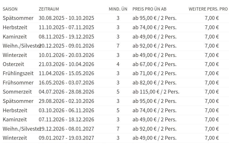 In den Ferienzeiten (Hochsaison) ist An-/Abreisetag in der Regel am Samstag: